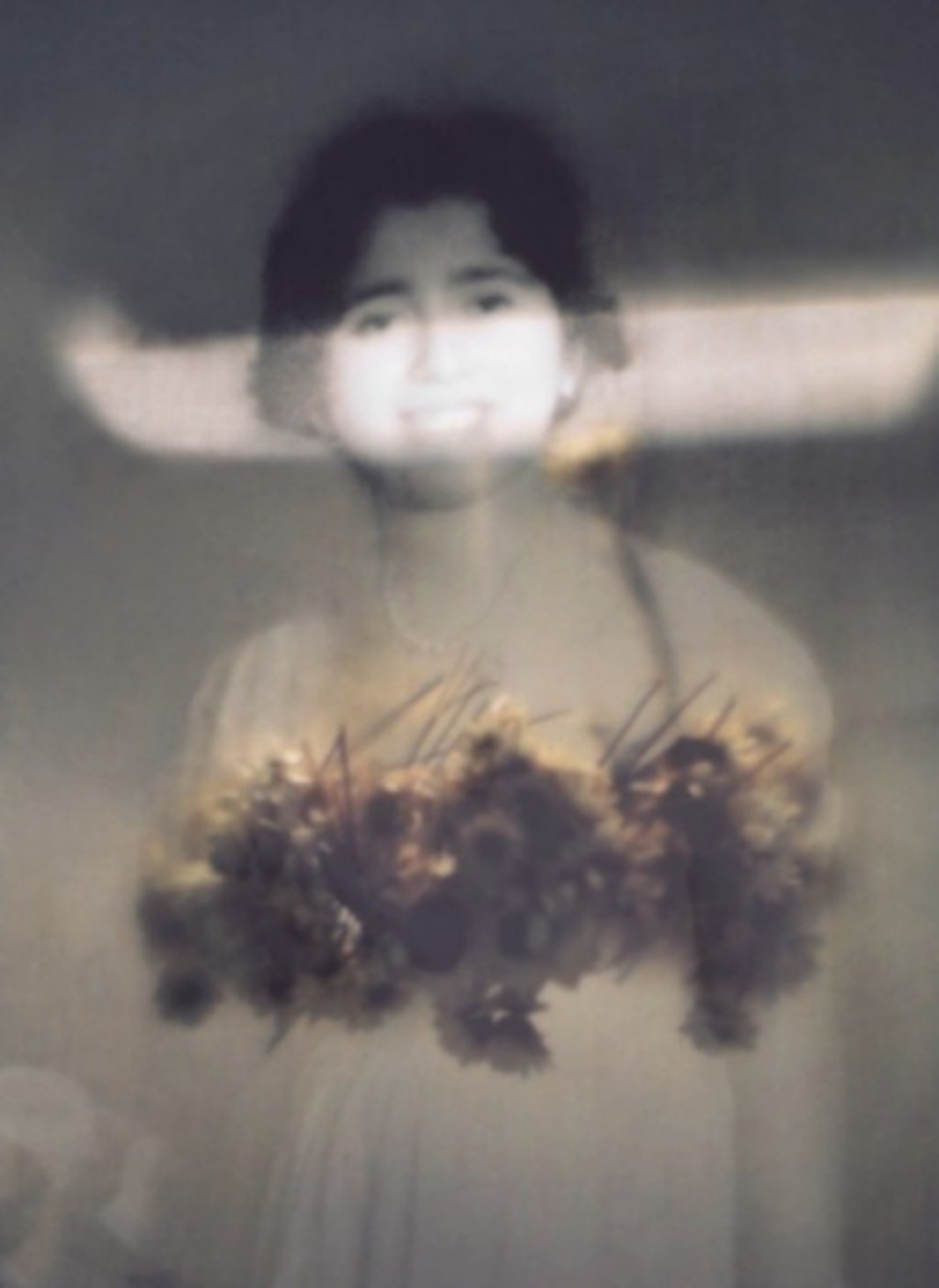 Frente de la cámara, en la pared, se halla impresa una fotografía (impresión directa), de una persona posando, la imagen utilizada es de tamaño natural escala 1:1. Me interesa posicionar a quien se enfrente con este trabajo, indagar en los mecanismos de la construcción de la memoria. 1973 se construye desde mi propia memoria superponiéndose con una memoria colectiva común a todos. Lo proyectado interactúa con las imágenes del muro en una continua tensión entre el adentro y el afuera, lo inmediato y lo mediato, el estar y él dejar de estar.