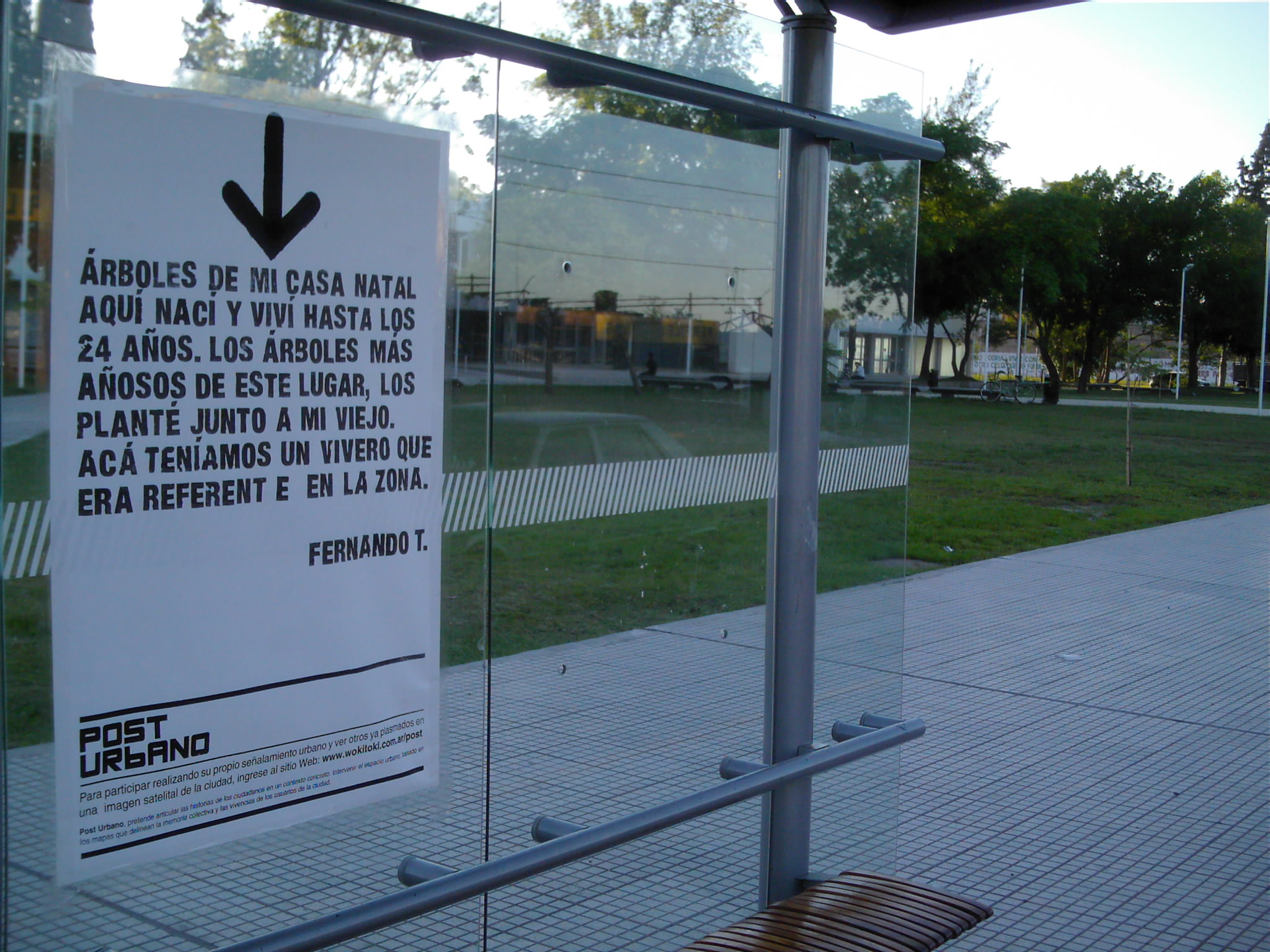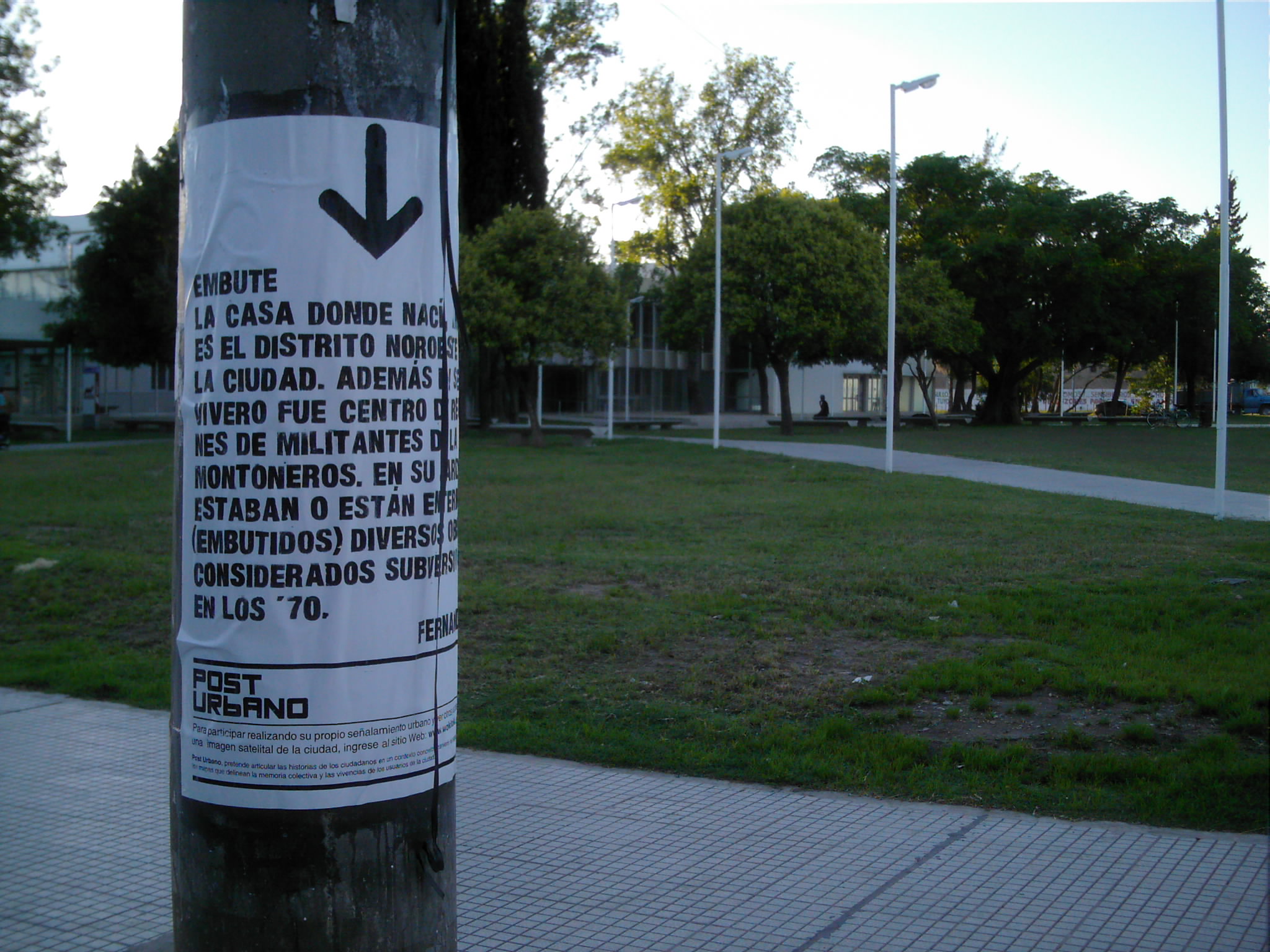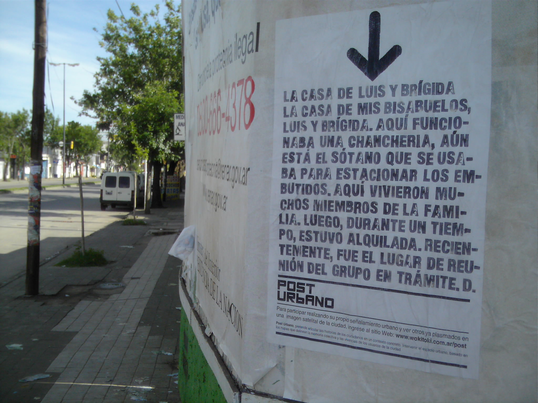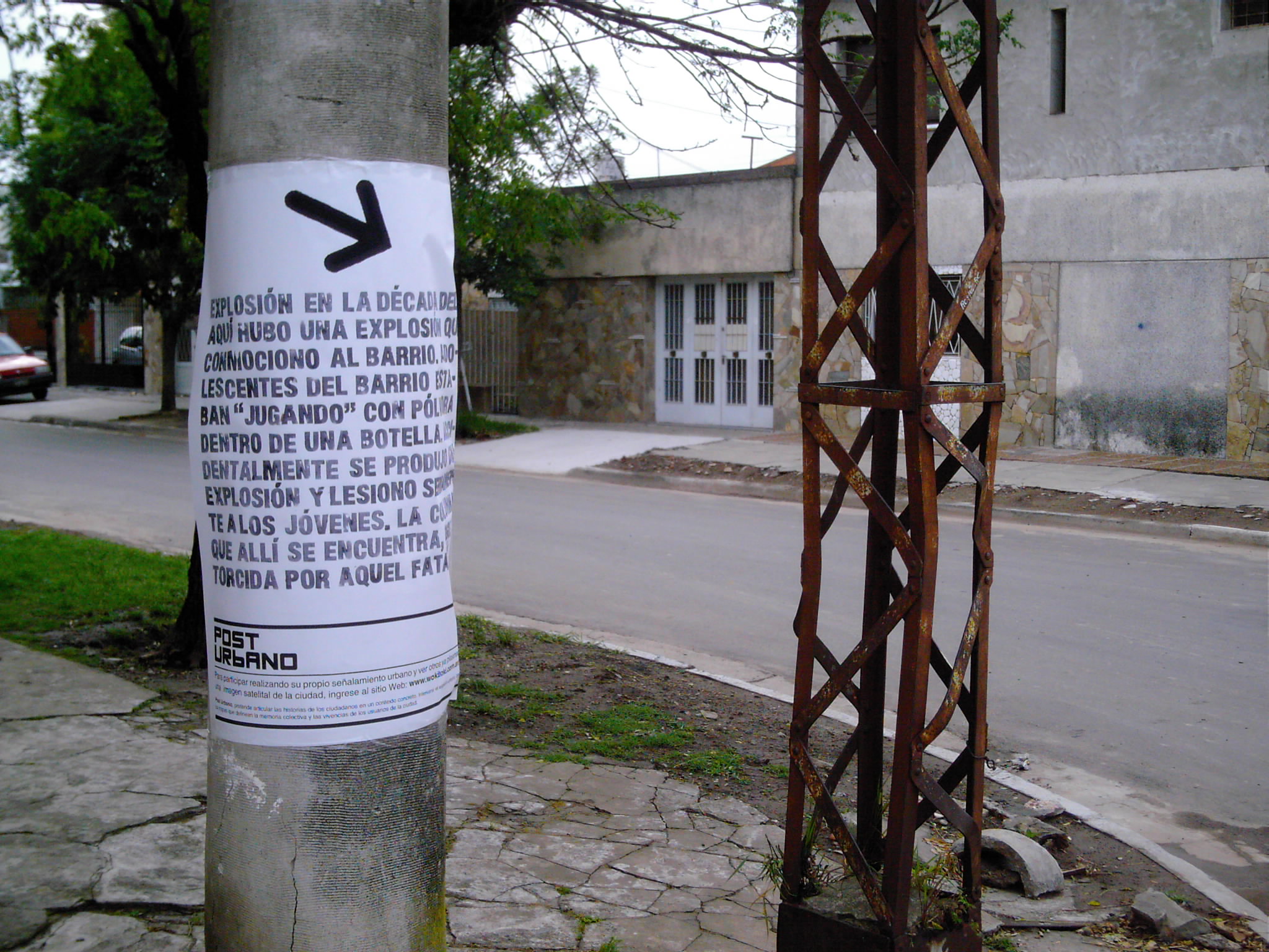 Post Urbano , una plataforma que permite la realización de señalizaciones urbanas, generando un entorno de colaboración entre habitantes y usuarios de la ciudad. Quien ingrese al sitio puede realizar su propio señalamiento urbano sobre una imagen satelital de la ciudad, acompañándolo con un relato o vivencia particular sobre el lugar indicado. Luego estas señalizaciones son transcriptas al espacio urbano (concreto) mediante afiches.