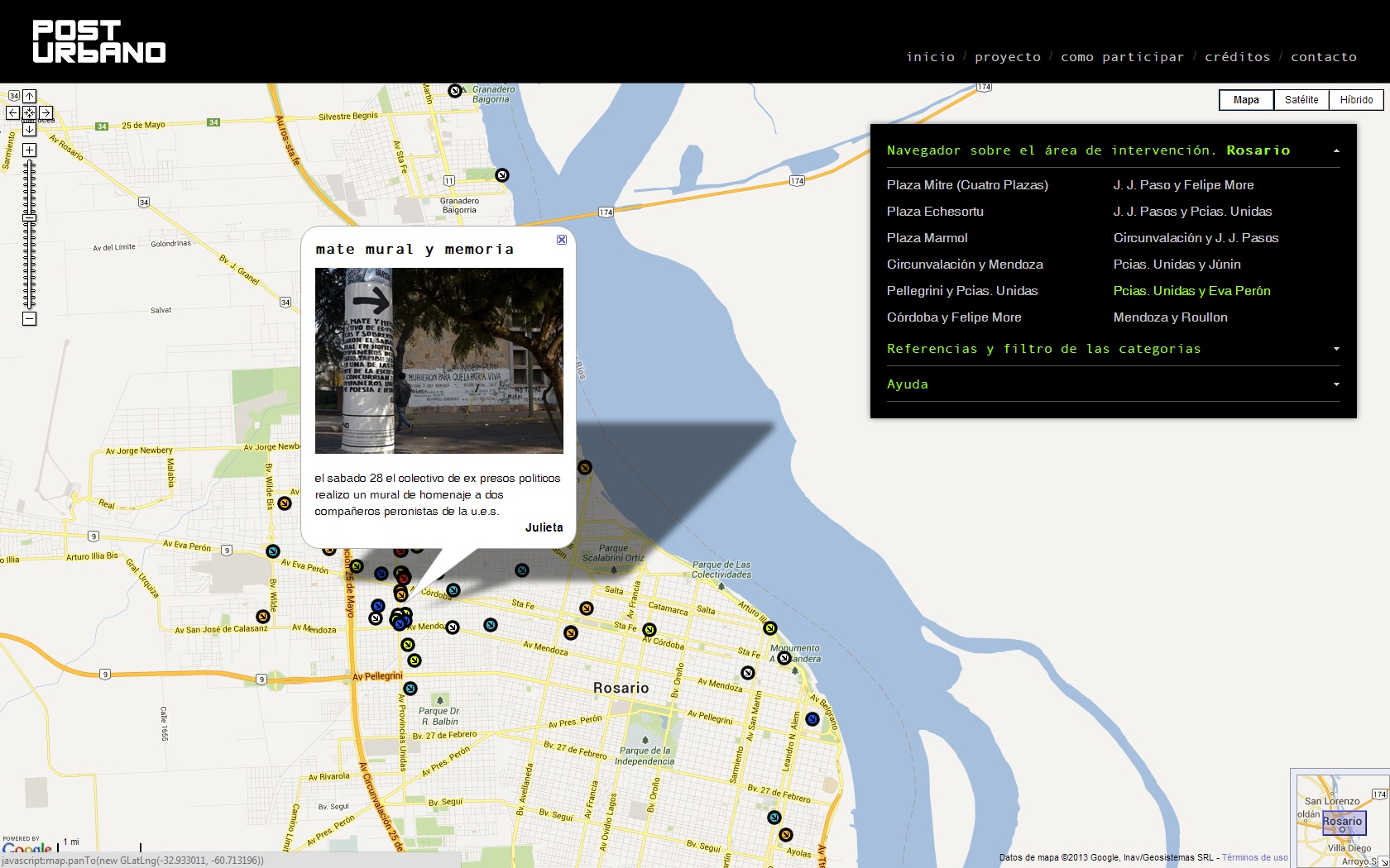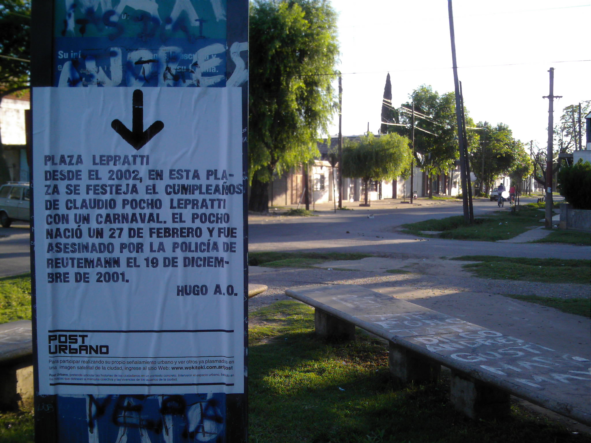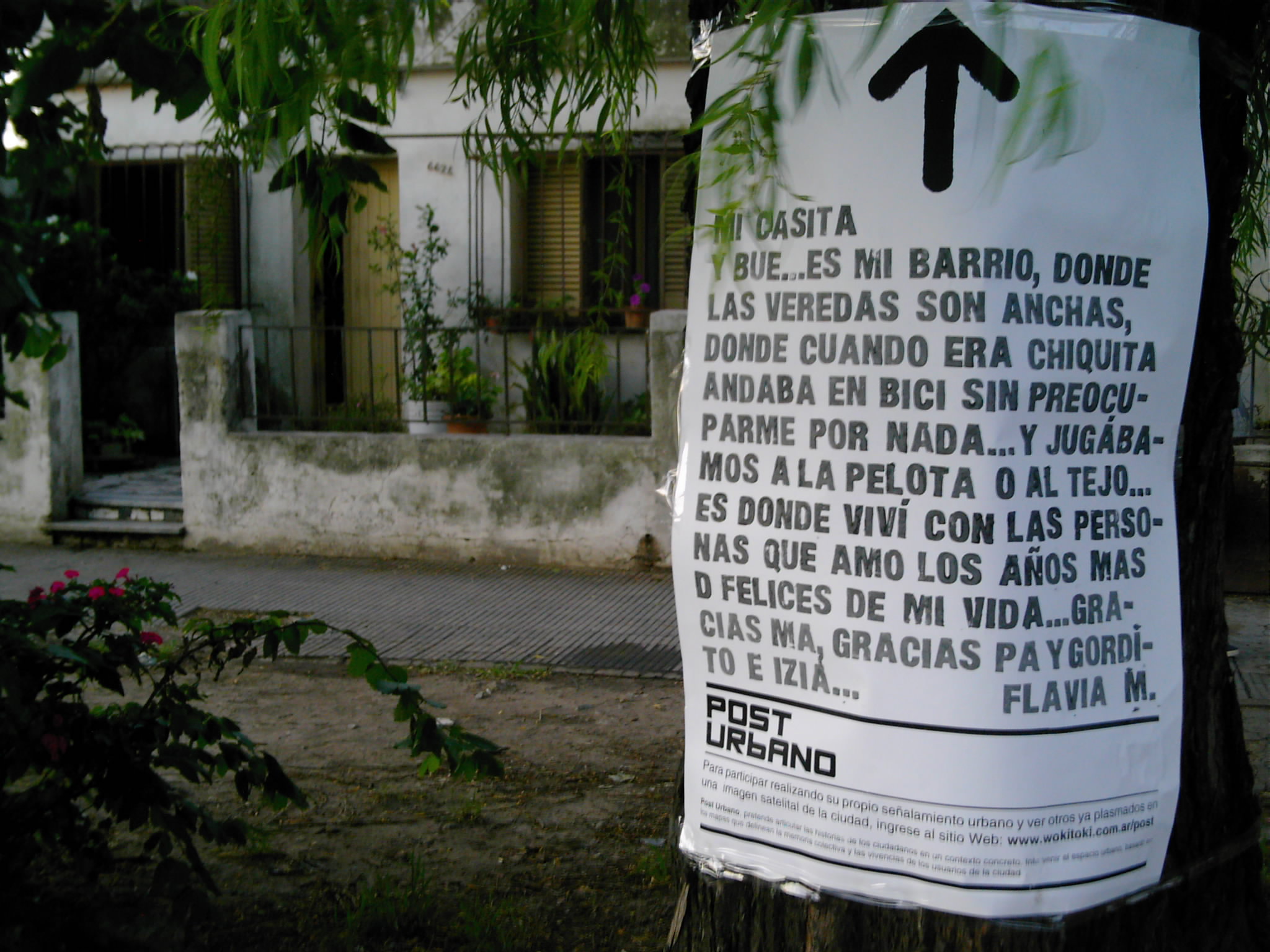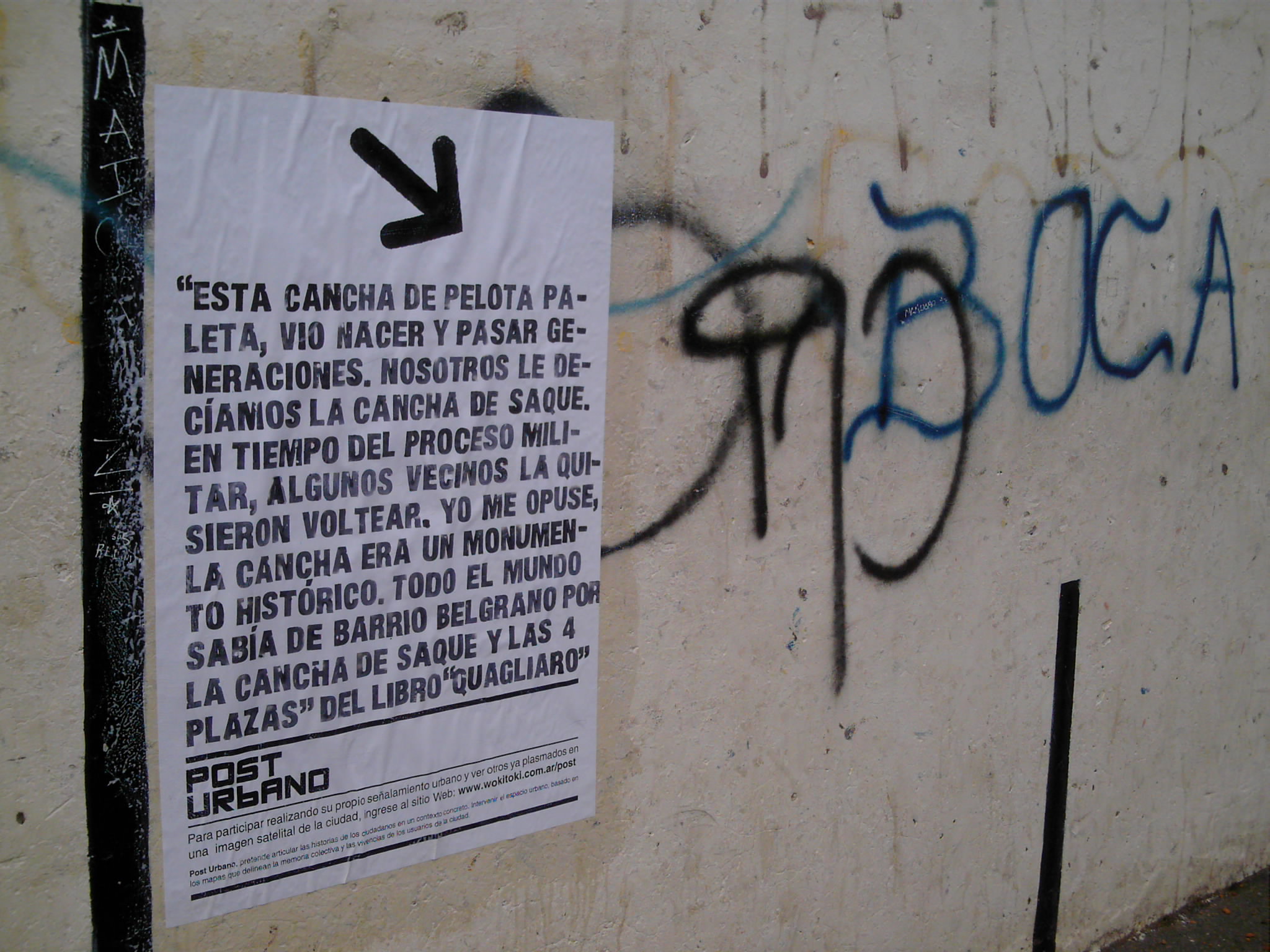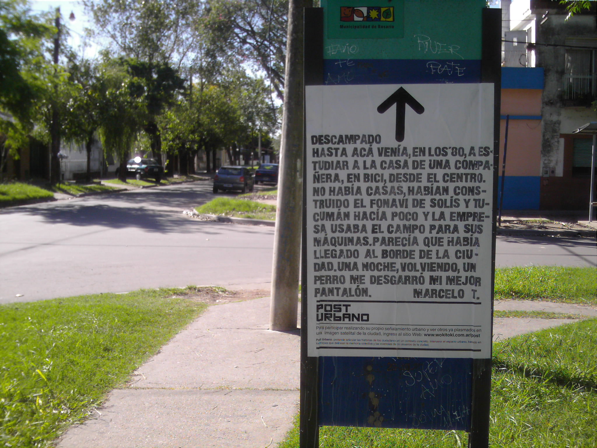 Post Urbano , una plataforma que permite la realización de señalizaciones urbanas, generando un entorno de colaboración entre habitantes y usuarios de la ciudad. Quien ingrese al sitio puede realizar su propio señalamiento urbano sobre una imagen satelital de la ciudad, acompañándolo con un relato o vivencia particular sobre el lugar indicado. Luego estas señalizaciones son transcriptas al espacio urbano (concreto) mediante afiches.